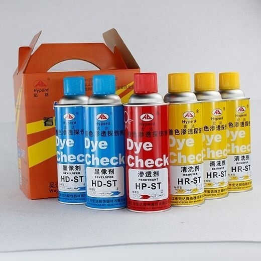 技術(shù)參數(shù):名稱滲透劑顯像劑清洗劑外型HP-STHD-STHR-ST外觀鮮紅色白色懸浮液無色透明密度腐蝕性LC4、MB-2、30CrMo試塊均無腐蝕運(yùn)動粘度穩(wěn)定性合格合格合格靈敏度3級去除性易去除易去除產(chǎn)品特長:⊙采用新日鐵材料制罐—保證不泄漏;⊙采用食用級醇溶劑,對人體的有害成份更低;⊙大規(guī)模流水線生產(chǎn),在線水檢—保證不堵塞;⊙德國進(jìn)口染料靈敏度更高,可達(dá)3級靈敏度;⊙可直接用水、溶清洗,污染更小